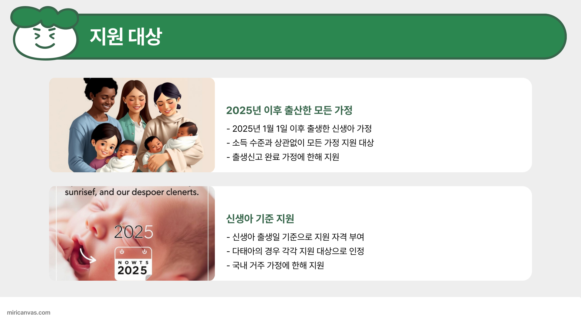 • 대상: 2025년 이후 출산 가정(신생아 기준)